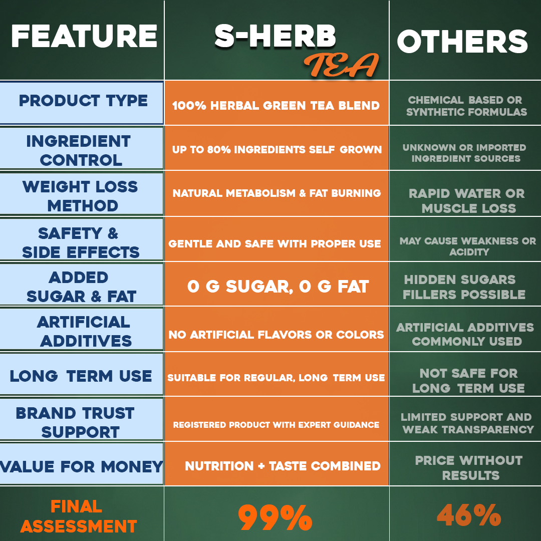 S-Herb Tea is a premium herbal tea formulated to support healthy weight management and natural fat burning. Its blend of potent herbs promotes overall metabolic balance while helping improve digestion and detoxification in a gentle, safe way.